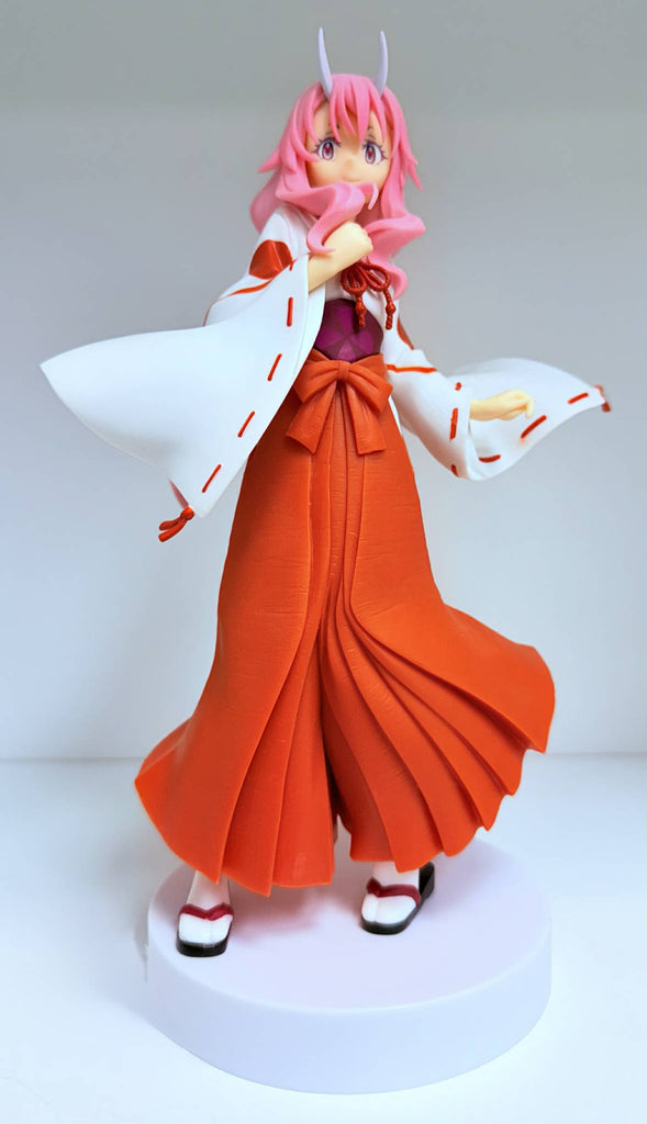 From the anime That Time I Got Reincarnated as a Slime, the ESPRESTO Maiden Costume Texture Shuna stands about 8 inches tall dressed in a maiden costume. Her outfit and long pink wavy hair dance with her movement and the wind.